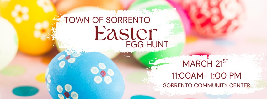 The Town of Sorrento will hold its annual Easter Egg Hunt on Saturday, April 5th from 11:00 AM – 1:00 PM at the Sorrento Community Center. In addition to the egg hunt they will have games, crafts and inflatables!
