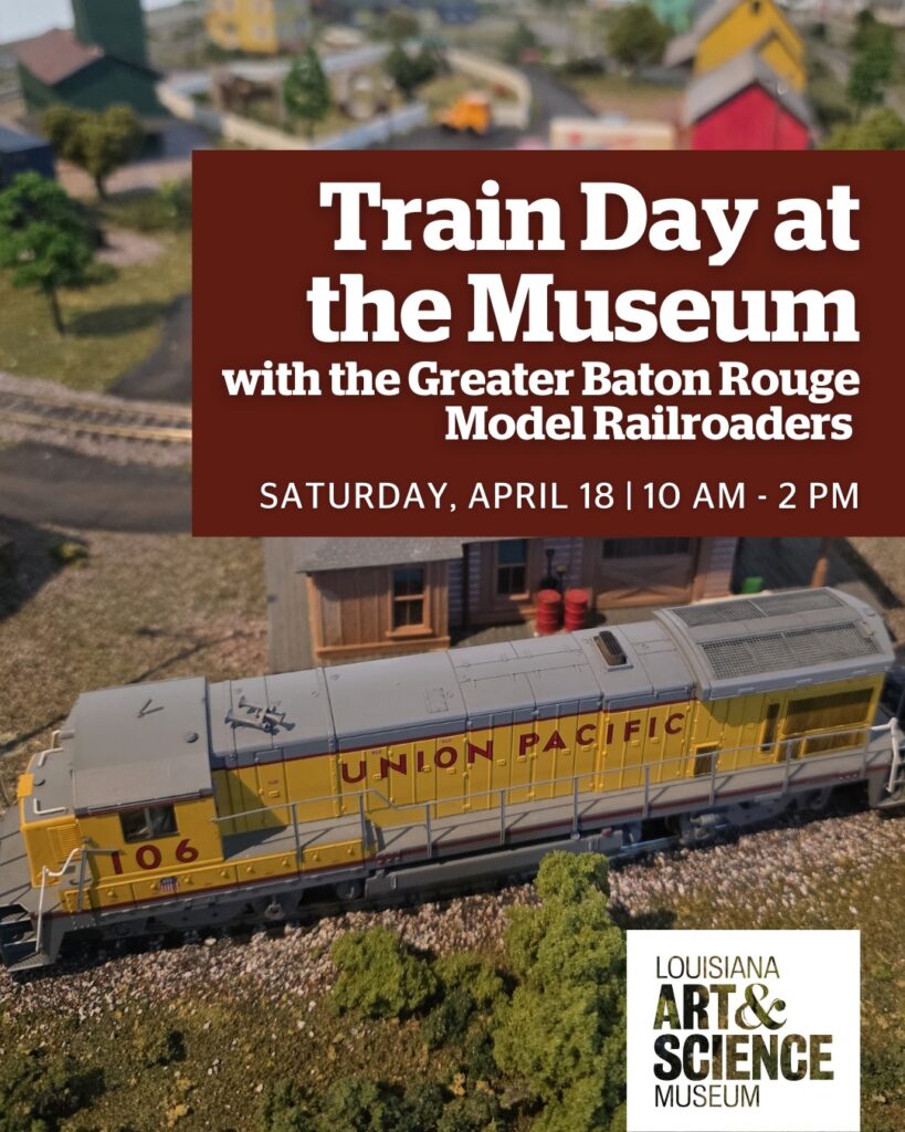 Details: Join LASM on Saturday, April 18, from 10 AM to 2 PM for a fun-filled, family-friendly celebration of trains and transportation. In partnership with the Greater Baton Rouge Model Railroaders, enjoy hands-on activities, model train demos, live steam trains, exhibitions, and planetarium shows inside a historic railroad depot.