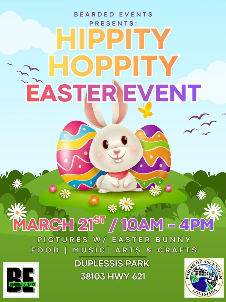 Details: Head to Ascension Parish for a festive Easter celebration featuring photos with the Easter Bunny, music, arts and crafts, and plenty of family-friendly activities throughout the day. Families can enjoy food, entertainment, and springtime fun at this community event hosted by Bearded Events.