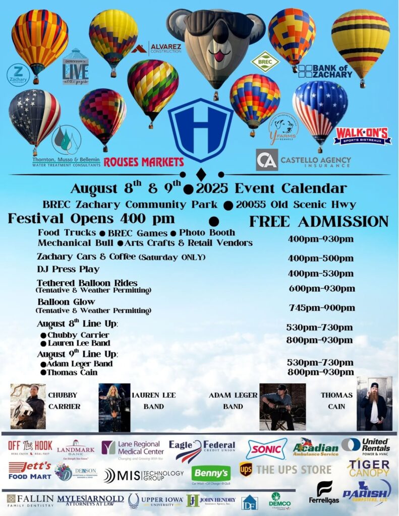 For more information and the latest updates, follow the Zachary Really Hot Air Balloon Festival Facebook page!