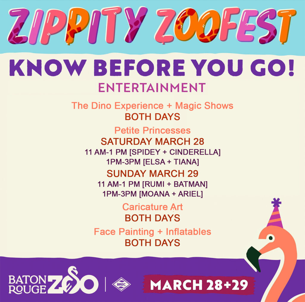 Calling all Party Animals!! Join BREC’s Baton Rouge Zoo as they celebrate their 56th birthday at Zippity Zoo Fest on March 28th & 29th!